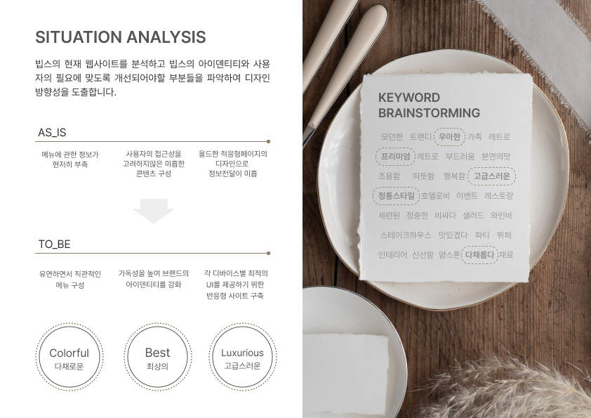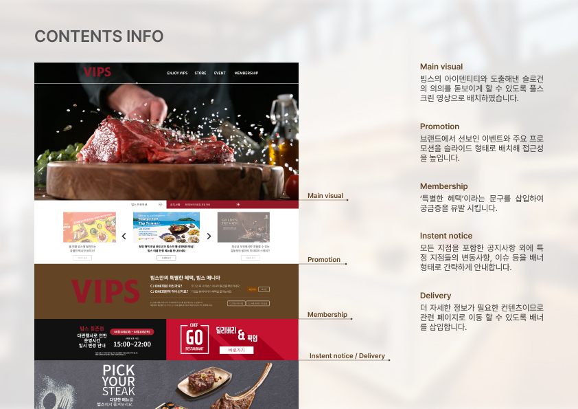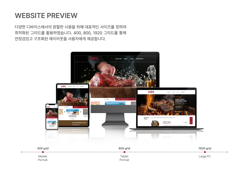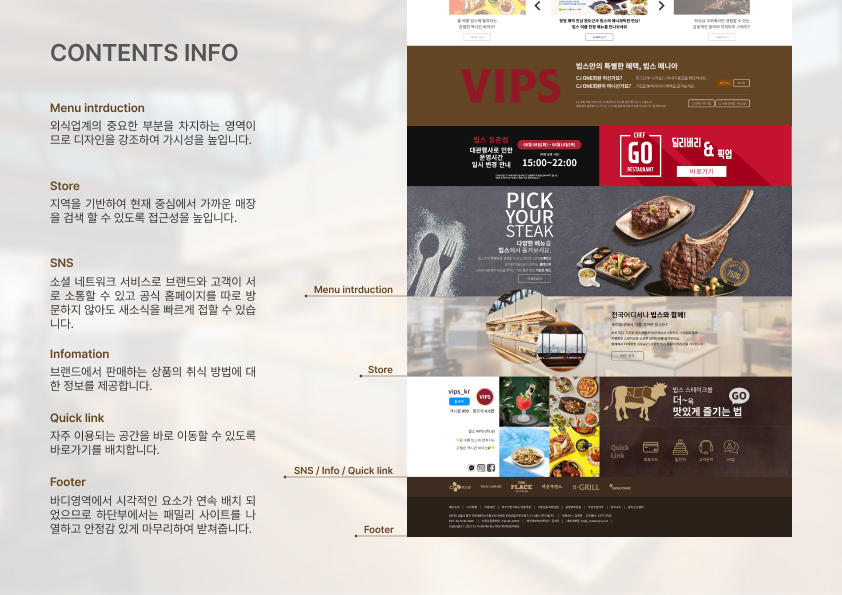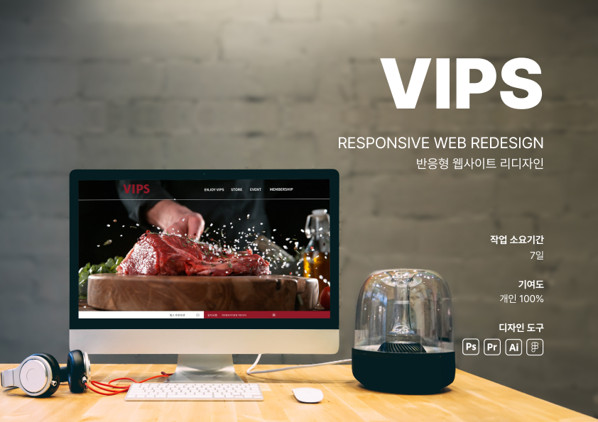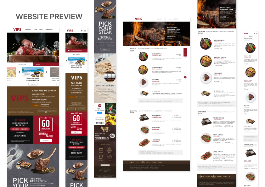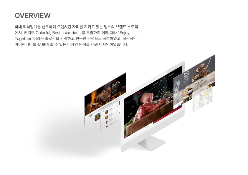 VIPS 홈페이지를 리디자인하며 브랜드 이미지 고도화와 UX 구조 개선을 동시에 진행했습니다. 비주얼 중심 레이아웃과 명확한 콘텐츠 구조로 사용성 및 전환 효율을 강화했습니다.