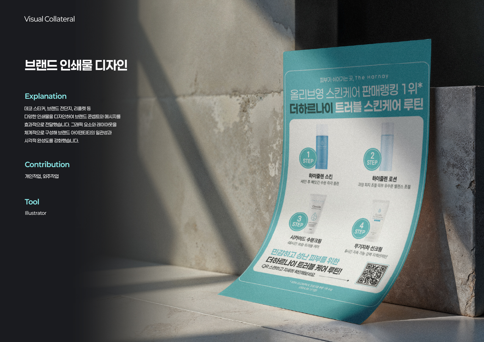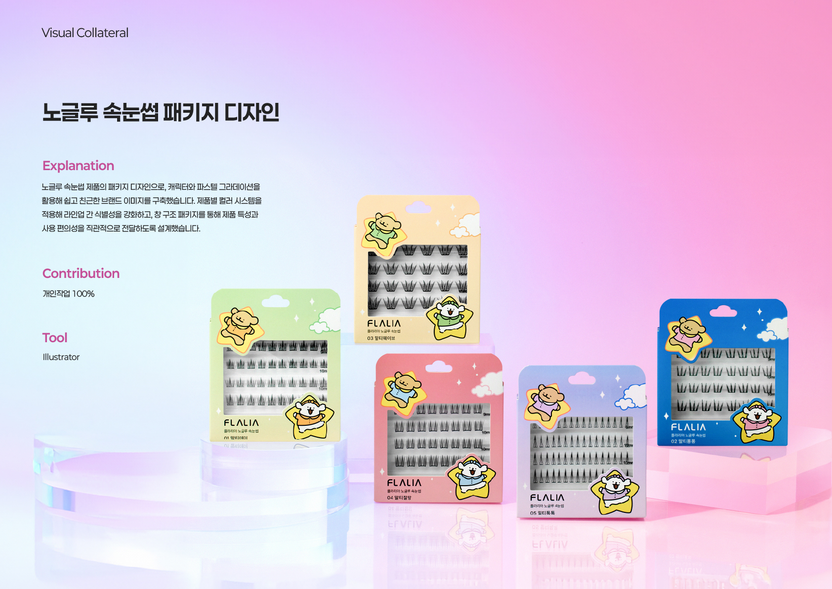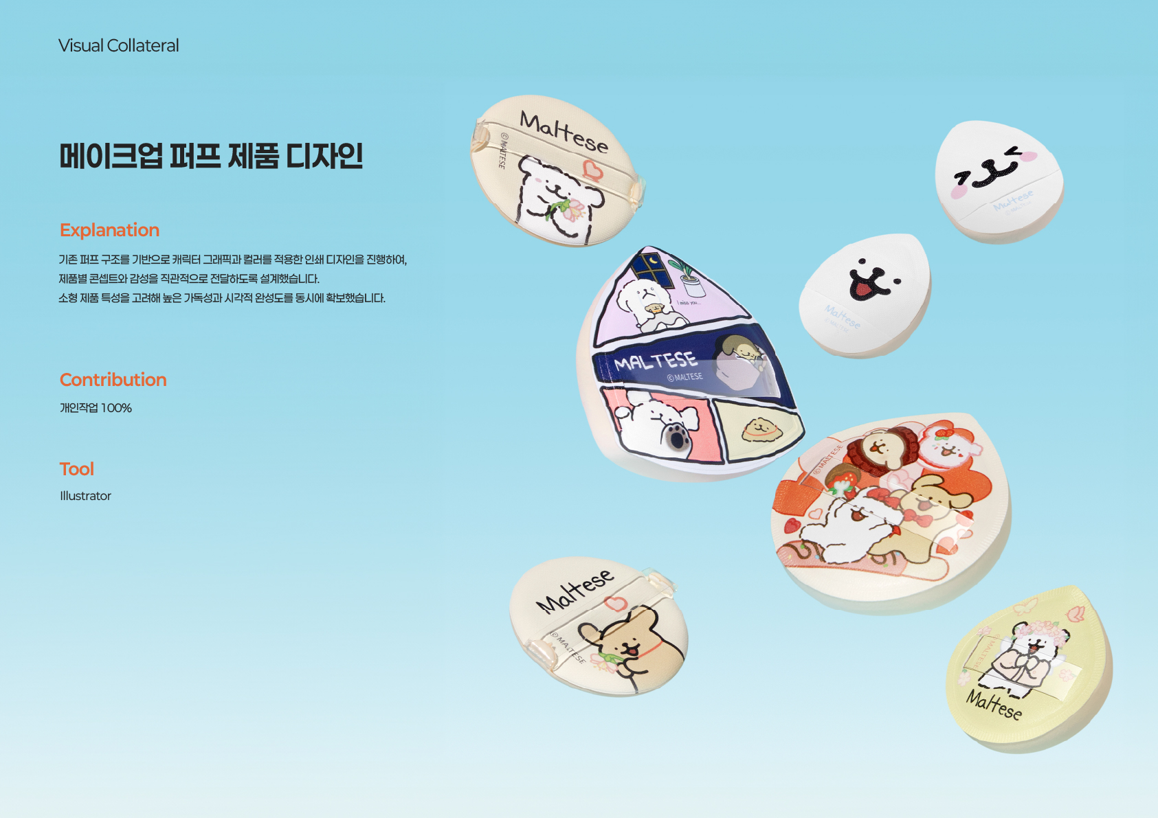 브랜드 제품, 패키지, 인쇄물 및 판촉물 외주 프로젝트의 시각화를 담당했습니다.